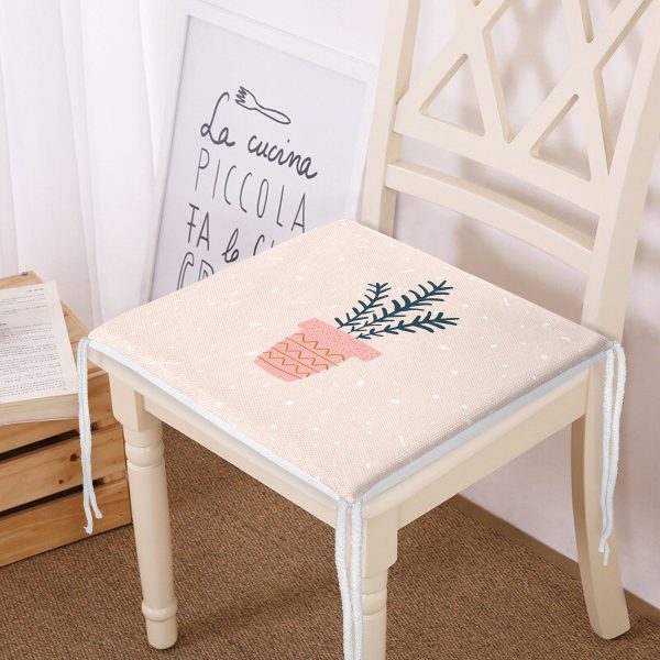 Renkli Zemin Üzerinde Beyaz Çam Ağacı Desenli Dijital Baskılı Modern Fermuarlı Sandalye Minderi