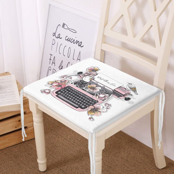 Pembe Antika Daktilo Çizimli Dijital Baskılı Fermuarlı Sandalye Minderi