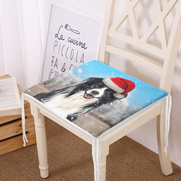 Yılbaşı Şapkalı Köpek Desenli Dijital Baskılı Modern Fermuarlı Sandalye Minderi