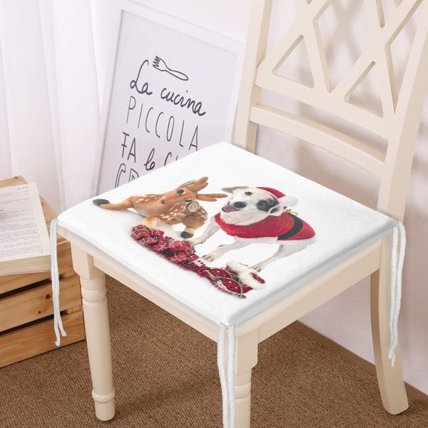 Yılbaşı Kıyafetli Köpek Desenli Dijital Baskılı Modern Fermuarlı Sandalye Minderi