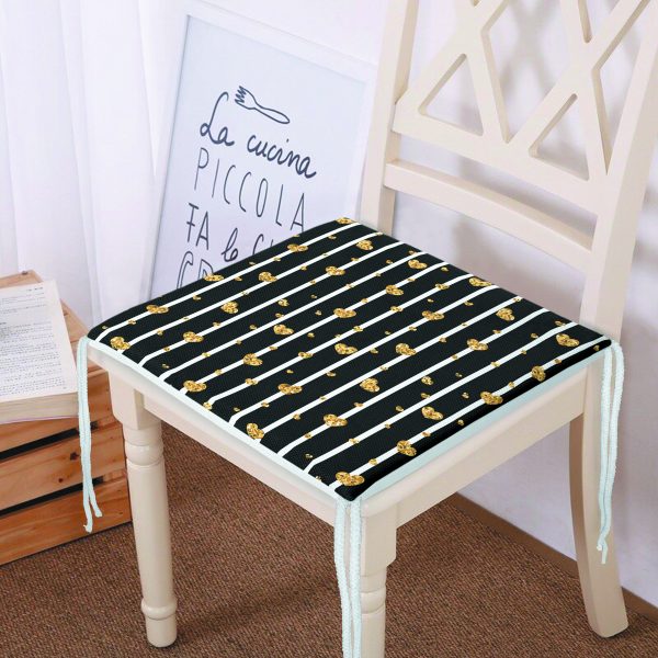 Çizgili Zemin Üzerinde Altın Kalpler Desenli Dijital Baskılı Fermuarlı Sandalye Minderi