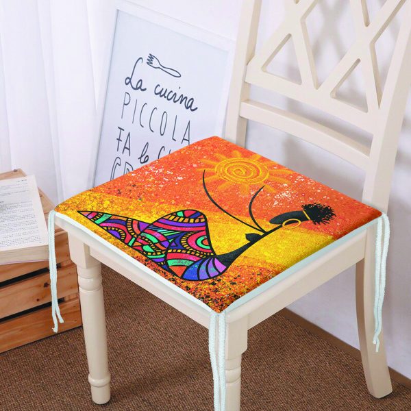 Afrika Kadın İllüstrasyon Motifli Dijital Baskılı Fermuarlı Sandalye Minderi