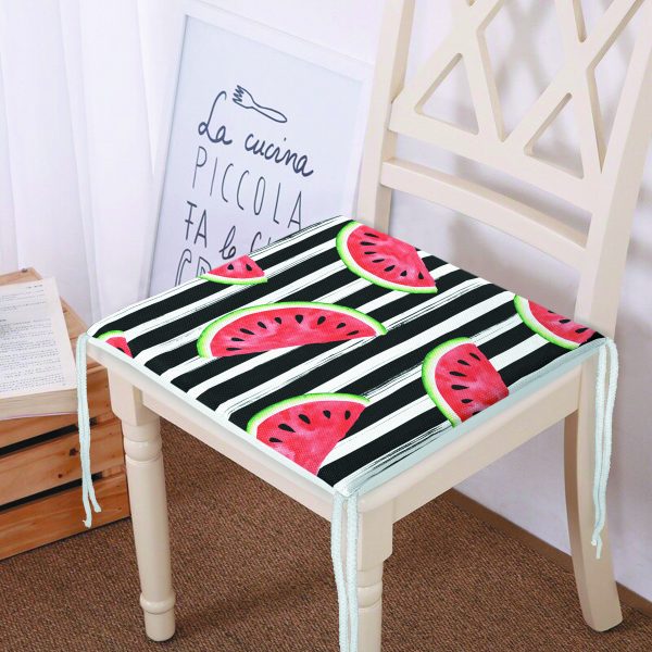 Çizgili Zemin Ve Karpuzlu Dijital Baskılı Fermuarlı Sandalye Minderi