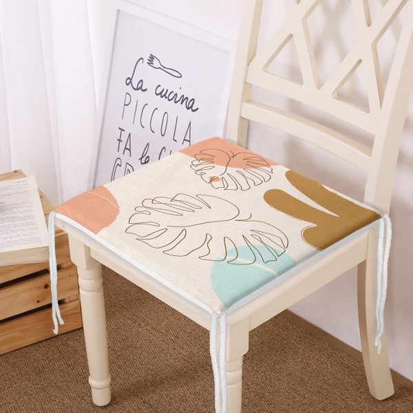 Renkli Zeminli Onedraw Çizimli Yaprak Desenli Dijital Baskılı Modern Fermuarlı Sandalye Minderi
