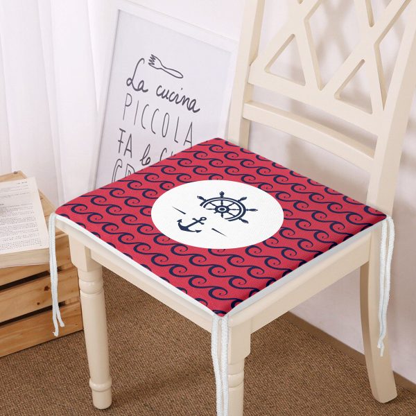 Çapa Desenli Dijital Baskılı Modern Fermuarlı Sandalye Minderi
