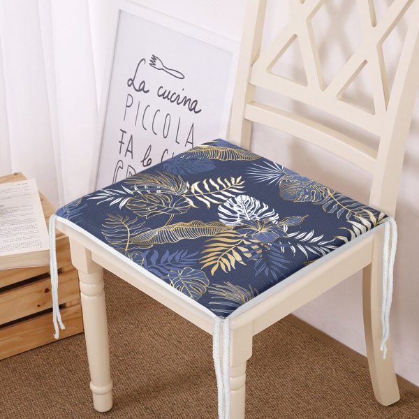 Mavi Zemin Üzerinde Gold Detaylı Yaprak Desenli Dijital Baskılı Modern Fermuarlı Sandalye Minderi