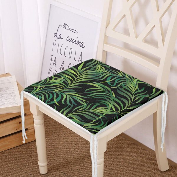 Siyah Zemin Üzerinde Yeşil Yaprak Desenli Dijital Baskılı Modern Fermuarlı Sandalye Minderi