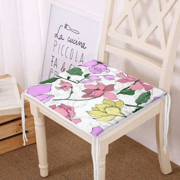 Özel Tasarım Çiçek Resimli Dijital Baskılı Modern Fermuarlı Sandalye Minderi