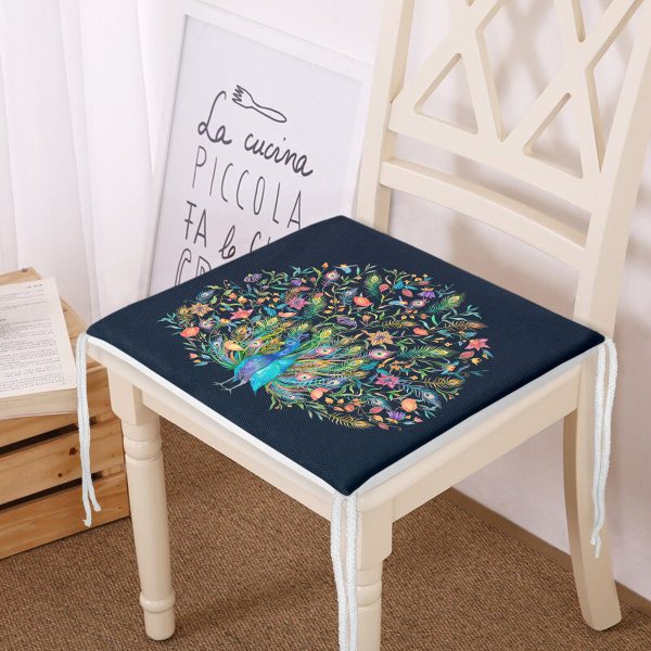 Lacivert Zemin Tavuskuşu Özel Tasarım Fermuarlı Sandalye Minderi