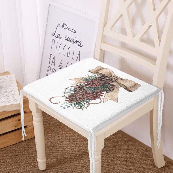 Kurdeleli Kozalak Motifli Dijital Baskılı Fermuarlı Sandalye Minderi