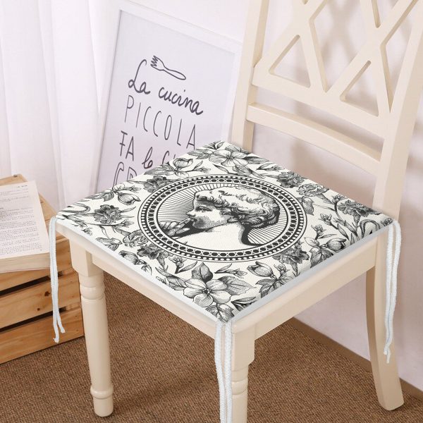 Karakalem Çiçek & Portre Desenli Dijital Baskılı Fermuarlı Sandalye Minderi