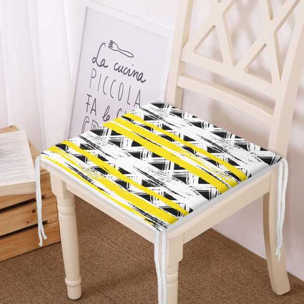 Sarı Siyah Üçgen ve Çizgiler Desenli Fermuarlı Sandalye Minderi