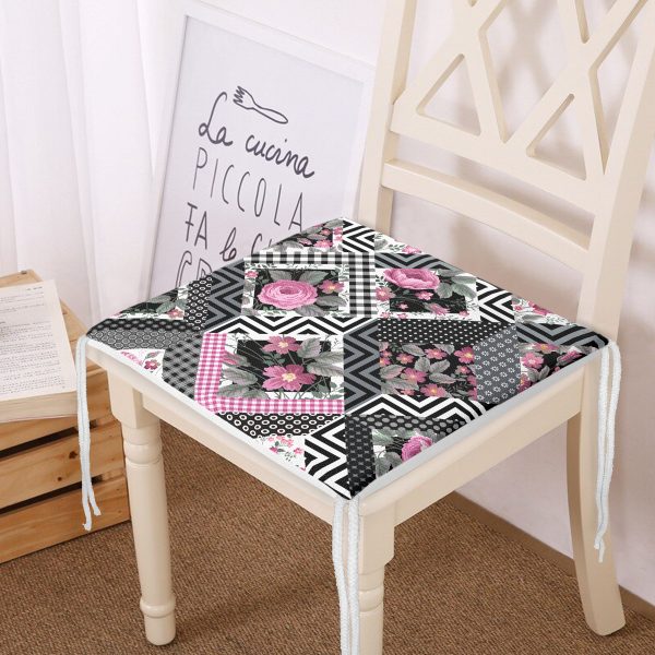 Çiçek Desenli Puan Motifli Fermuarlı Sandalye Minderi