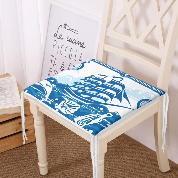 Mavi Çizgi Desenli Dijital Baskılı Fermuarlı Sandalye Minderi