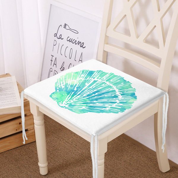 Beyaz Zeminde Yeşil Renkli Deniz Kabuğu Desenli Dijital Baskılı Modern Fermuarlı Sandalye Minderi