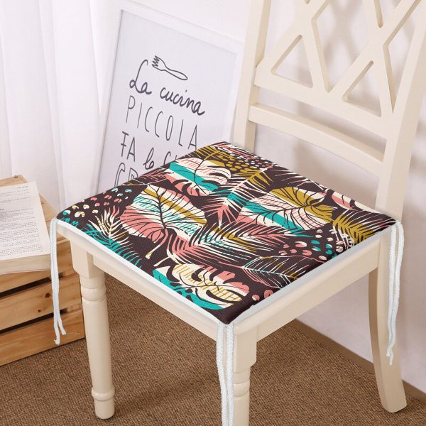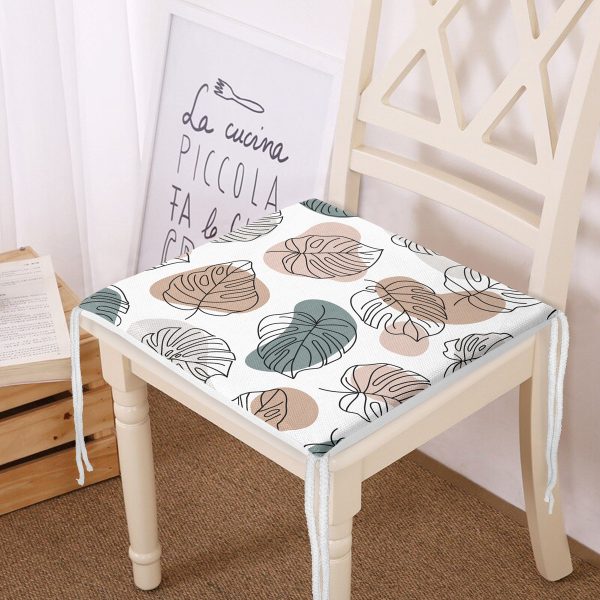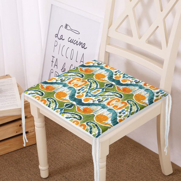 Renkli Zemin Üzerinde Yaprak Desenli Dijital Baskılı Modern Fermuarlı Sandalye Minderi