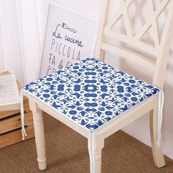 Beyaz Zeminli Çini Desenli Dijital Baskılı Modern Fermuarlı Sandalye Minderi