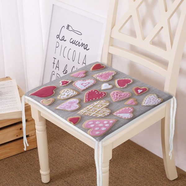 Kalp Desenli Dijital Baskılı Fermuarlı Sandalye Minderi