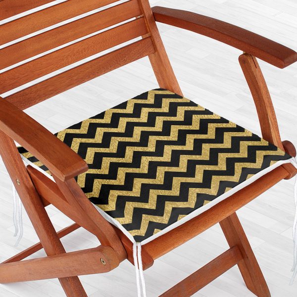 Gold Zemin Üzerinde Siyah Zikzak Desenli Dijital Baskılı Modern Fermuarlı Sandalye Minderi