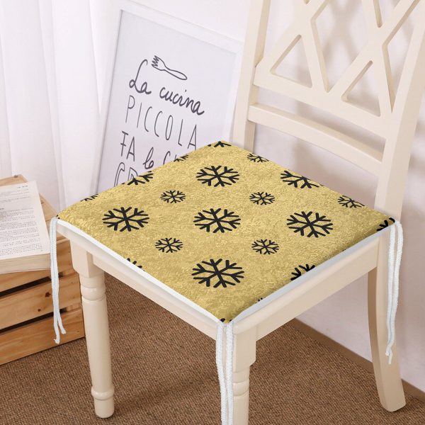 Gold Zemin Üzerinde Siyah Renkli Kar tanesi Desenli Dijital Baskılı Modern Fermuarlı Sandalye Minderi