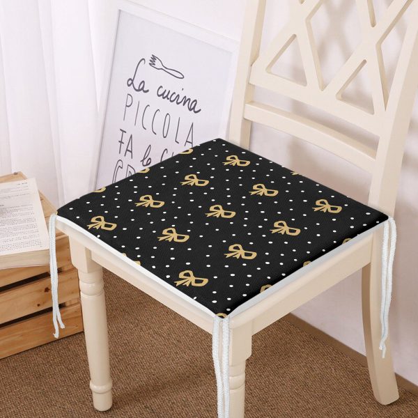 Siyah Zemin Üzerinde Gold Detaylı Fiyonk Çizimli Dijital Baskılı Modern Fermuarlı Sandalye Minderi