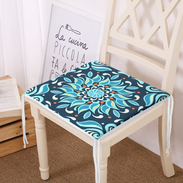 Renkli Zemin Üzerinde Çini Desenli Dijital Baskılı Modern Fermuarlı Sandalye Minderi