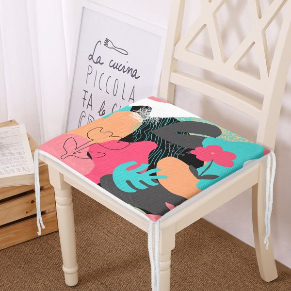 Renkli Zemin Üzerinde Çiçek Desenli Dijital Baskılı Modern Fermuarlı Sandalye Minderi