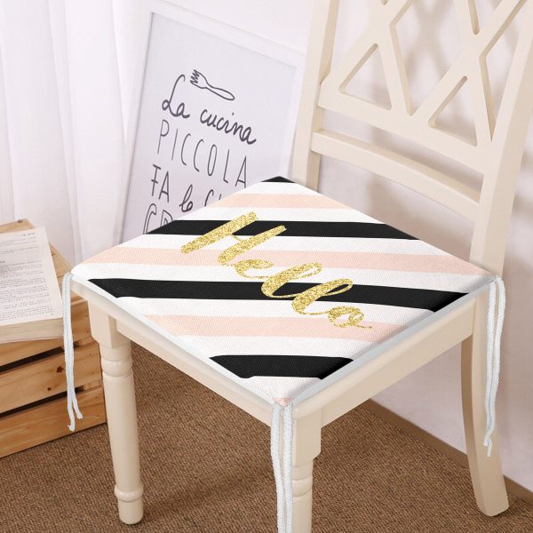 Beyaz Zeminde Renkli Yatay Çizgili Gold Detaylı Hello Yazılı Dijital Baskılı Modern Fermuarlı Sandalye Minderi