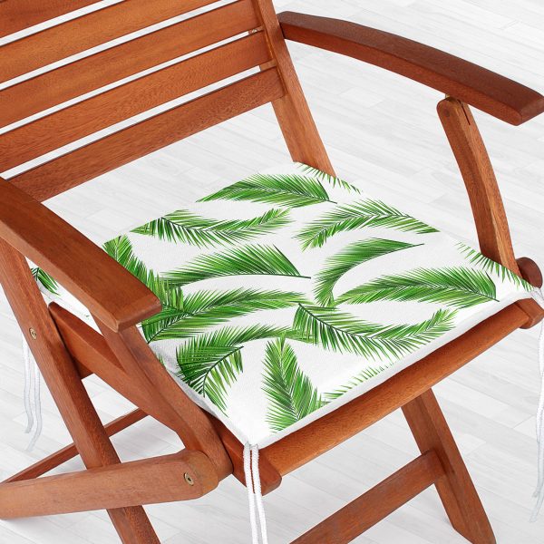 Beyaz Zemin Üzerinde Yeşil Yaprak Desenli Dijital Baskılı Modern Fermuarlı Sandalye Minderi