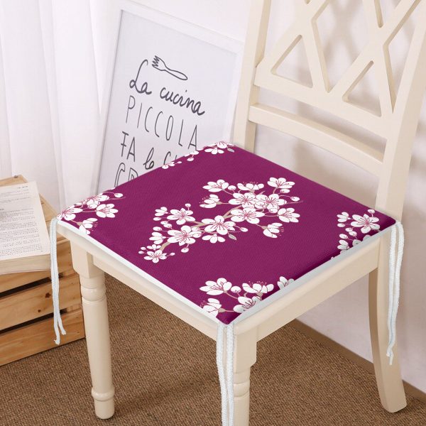 Bordo Zemin Üzerinde Beyaz Renkli Çiçek Desenli Dijital Baskılı Modern Fermuarlı Sandalye Minderi