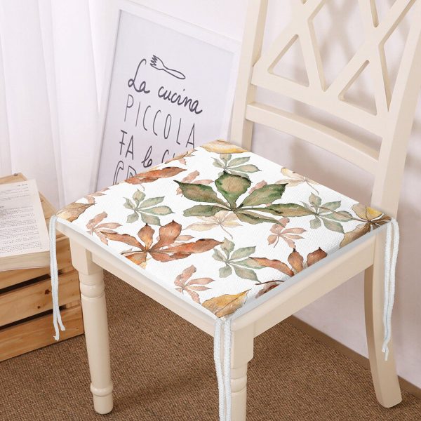 Beyaz Zemin Üzerinde Sonbahar Yaprak Desenli Dijital Baskılı Modern Fermuarlı Sandalye Minderi
