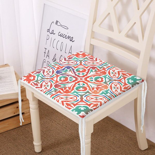 Renkli Zemin Üzerinde Geometrik Yaprak Desenli Dijital Baskılı Modern Fermuarlı Sandalye Minderi