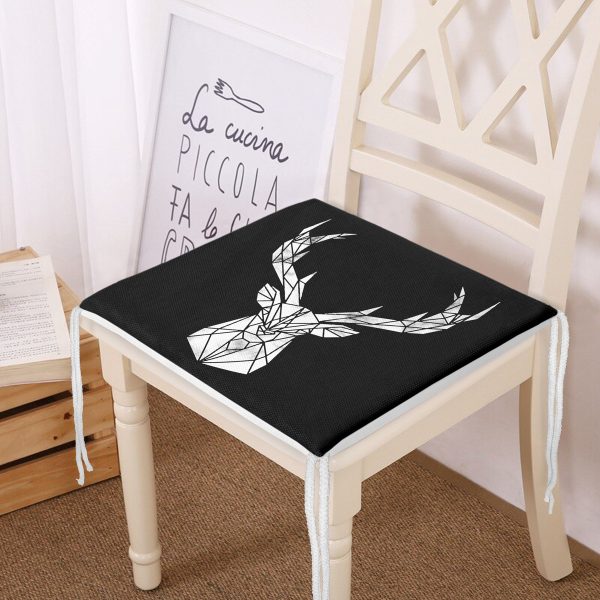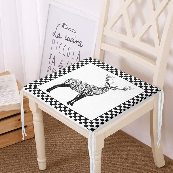 Dama Çerçeveli Ağaç Tasarımlı Geyik Çizimli Fermuarlı Sandalye Minderi