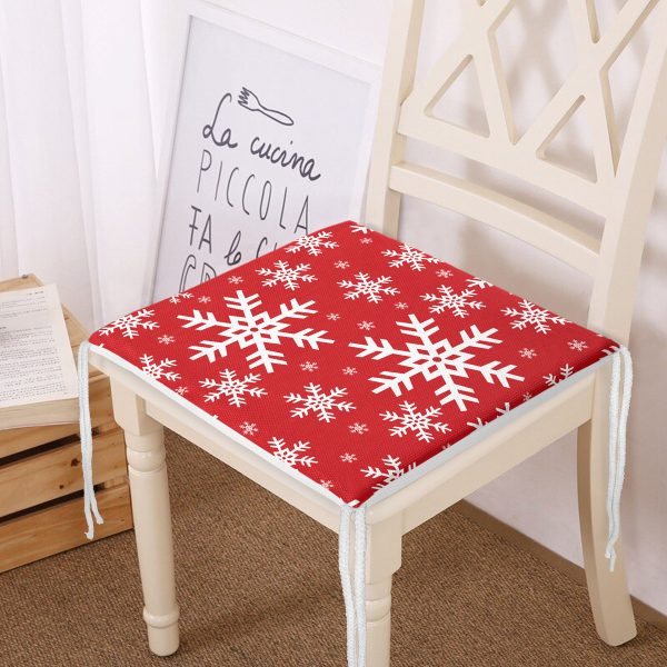 Kırmızı Zemin Kar Tanesi Özel Tasarım Yılbaşı Temalı Fermuarlı Sandalye Minderi