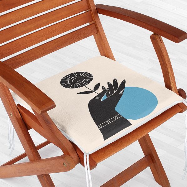 Sanatsal Yeşeren Çiçek Tasarımlı Dijital Baskılı Fermuarlı Sandalye Minderi