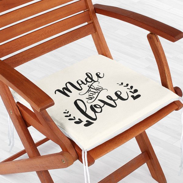 Made With Love Yazılı Dijital Baskılı Modern Fermuarlı Sandalye Minderi