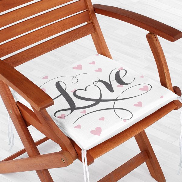 Love Yazılı Kalp Puanlı Motifli Fermuarlı Sandalye Minderi