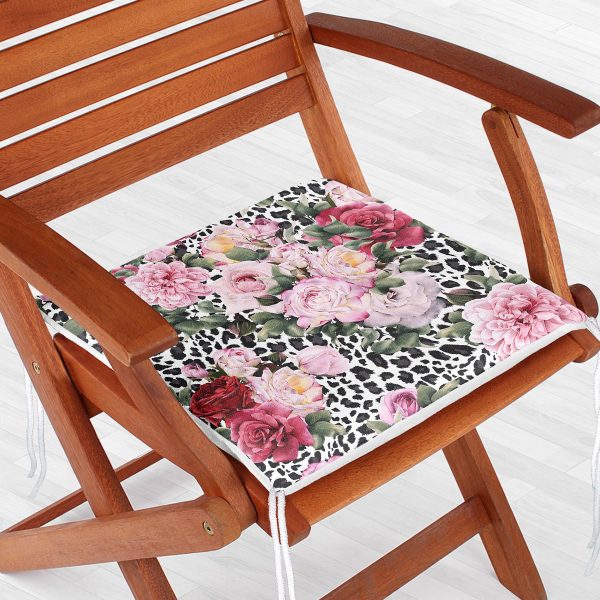 Leopar Temalı Kanaviçe Desenli Dijital Baskılı Fermuarlı Sandalye Minderi