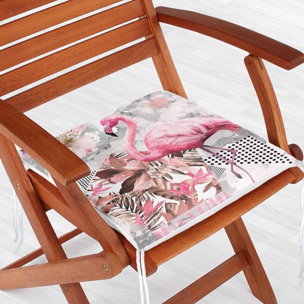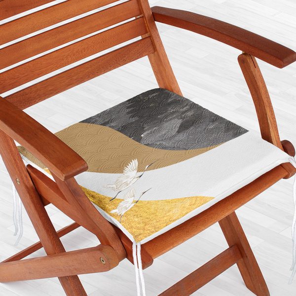 Renkli Zeminde Leylek Desenli Dijital Baskılı Modern Fermuarlı Sandalye Minderi