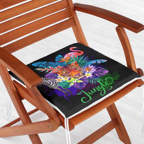 Siyah Zeminde Jungle Özel Tasarımlı Modern Fermuarlı Sandalye Minderi