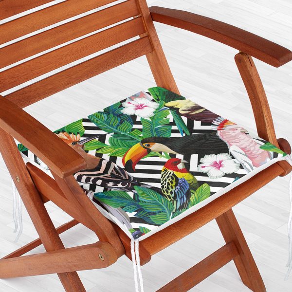 Geometrik Zeminde Tropikal Desenli Dijital Baskılı Modern Fermuarlı Sandalye Minderi