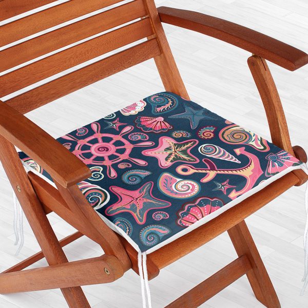 Lacivert Zeminli Deniz Midyeleri Dijital Baskılı Modern Fermuarlı Sandalye Minderi