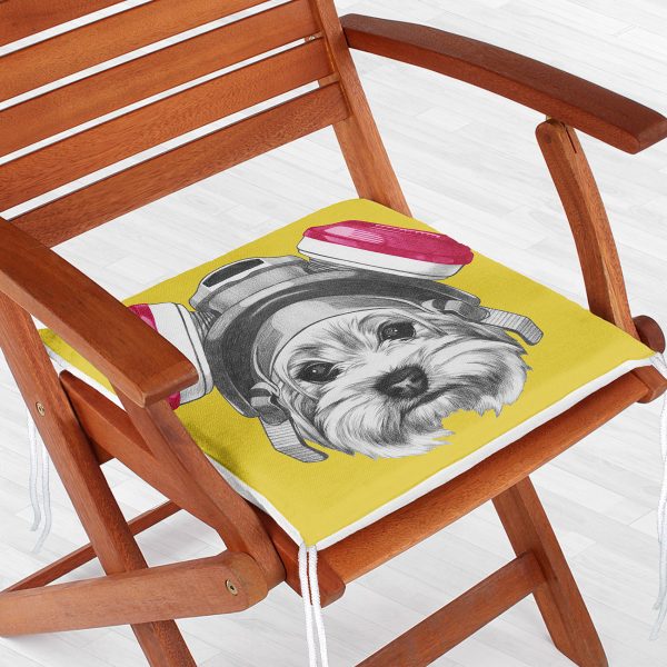 Kulaklıklı Köpek Motifli Dijital Baskılı Modern Fermuarlı Sandalye Minderi