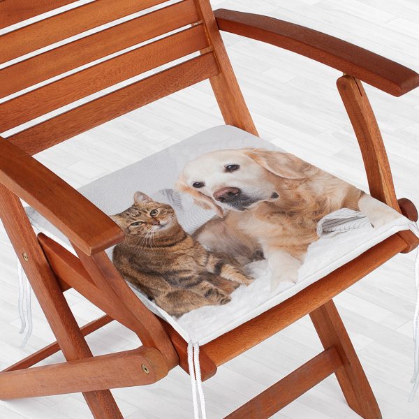 Sevimli Kedi ve Köpek Dijital Baskılı Modern Fermuarlı Sandalye Minderi