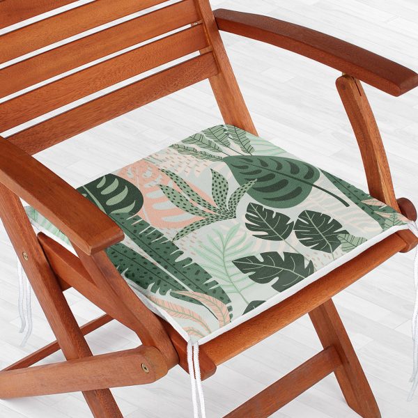 Soft Renkli Zemin Üzerinde Koyu Renkli Yaprak Desenli Dijital Baskılı Modern Fermuarlı Sandalye Minderi
