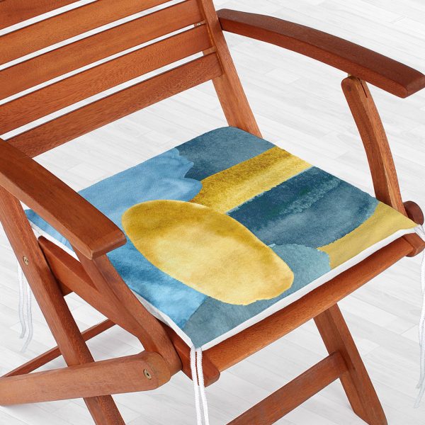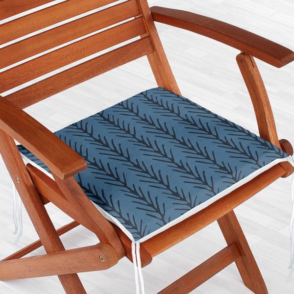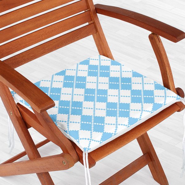 Mavi Zemin Üzerinde Kare Desenli Dijital Baskılı Modern Fermuarlı Sandalye Minderi
