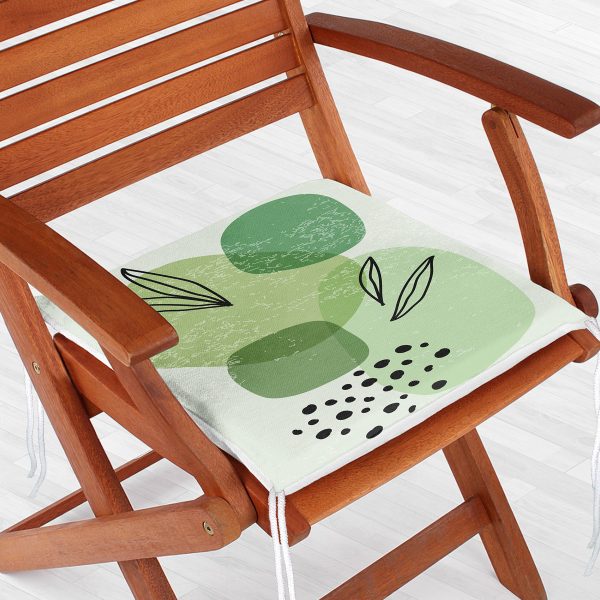 Yeşil Ve Krem Motifli Tasarım Dijital Baskılı Fermuarlı Sandalye Minderi