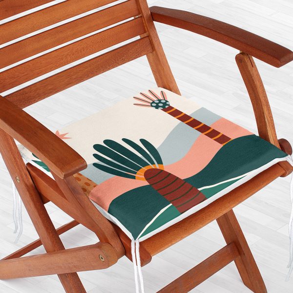 Renkli Zeminli Palmiye Desenli Dijital Baskılı Modern Fermuarlı Sandalye Minderi