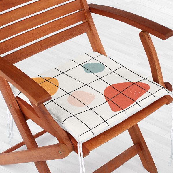 Renkli Zeminde Oval Çizimli Dijital Baskılı Modern Fermuarlı Sandalye Minderi