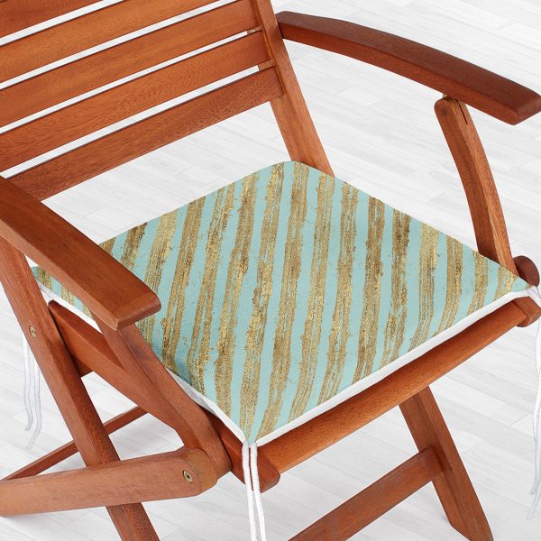 Renkli Zemin Üzerinde Gold Detaylı Yatay Çizgili Dijital Baskılı Modern Fermuarlı Sandalye Minderi